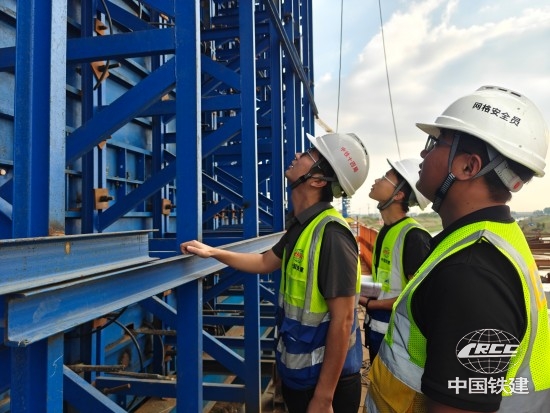 網格員對0號塊模板進行質量檢查(劉憶 攝)